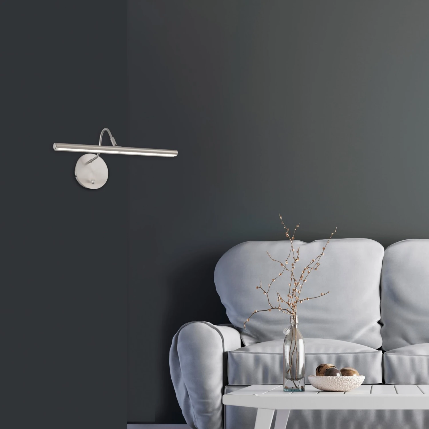 El aplique Nami está equipado con LEDs de bajo consumo. Gracias a su forma clásica y a su diseño sencillo, se integra sin esfuerzo en cualquier concepto de mobiliario y de color. Un botón integrado en la lámpara no sólo permite ajustar el color de la luz en tres pasos, sino también atenuar el brillo de forma continua. Además, el cabezal de la luminaria, estrecho y alargado, es regulable, lo que permite dirigir la luz de forma óptima. Gracias a las múltiples posibilidades de ajuste, la luminaria puede adaptarse siempre a las necesidades de cada uno y la luz crea un ambiente agradable en la vivienda.