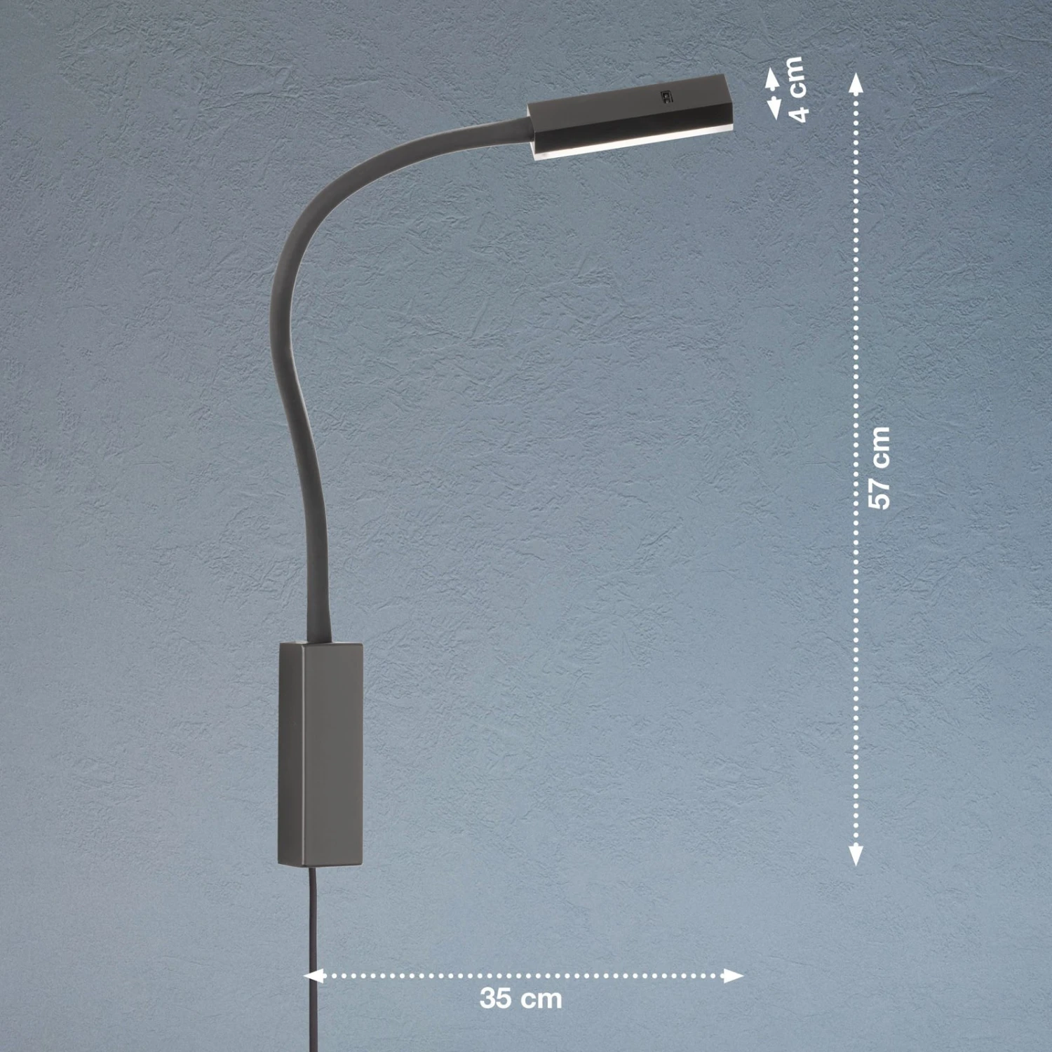 El aplique LED Raik crea una luz y unas puntuaciones óptimas con la función de control gestual. Esto no sólo permite encender y apagar la luz con la ayuda de un simple gesto, sino también una atenuación continua. Esto permite crear el ambiente adecuado para cada situación. Es especialmente adecuada como luz de lectura cuando se monta en la pared junto a la cama. También está equipado con un enchufe y, por lo tanto, puede conectarse individualmente a través de una toma de corriente.