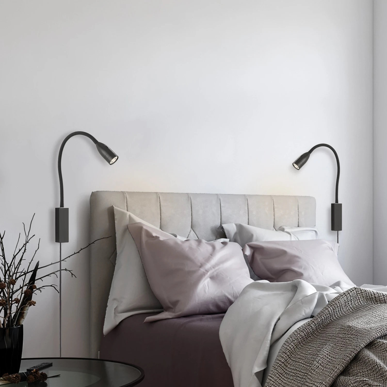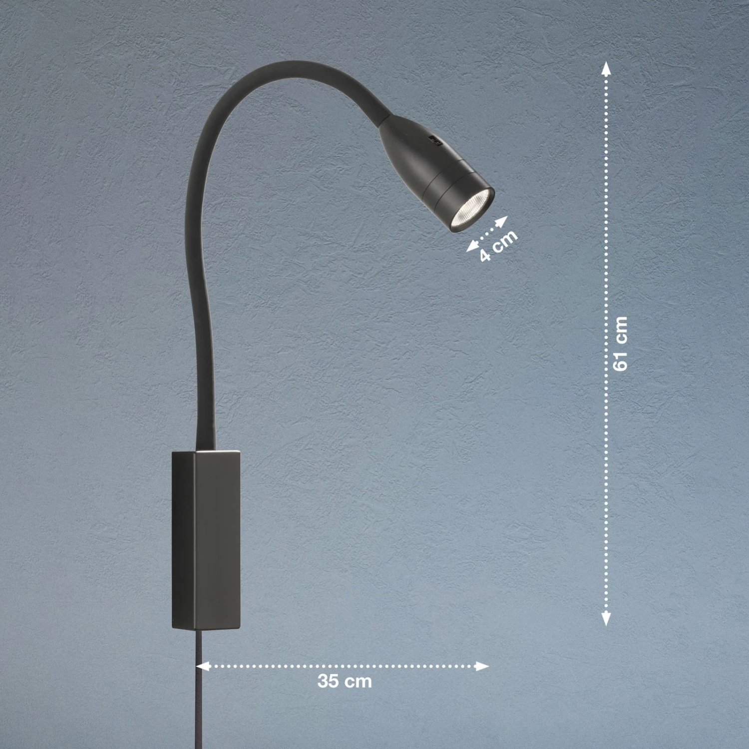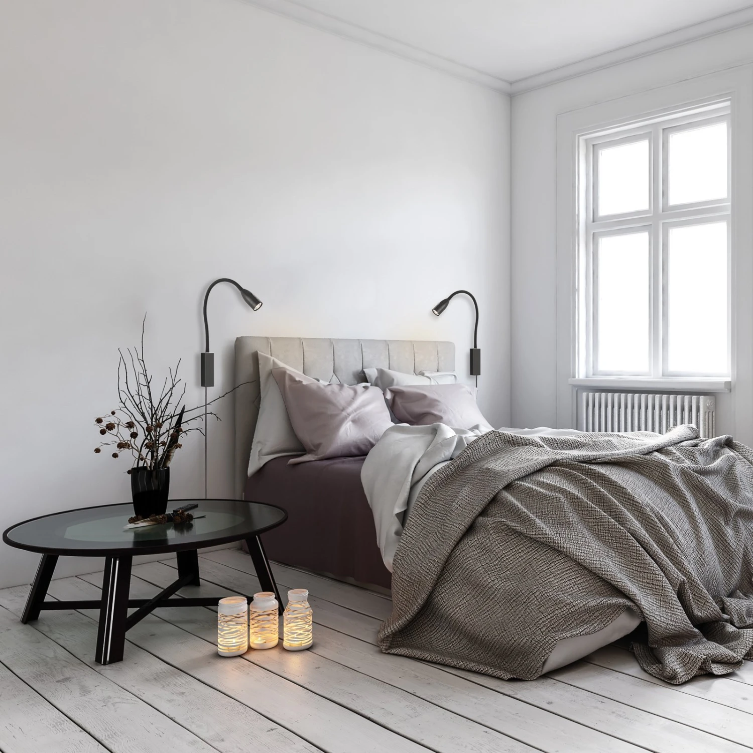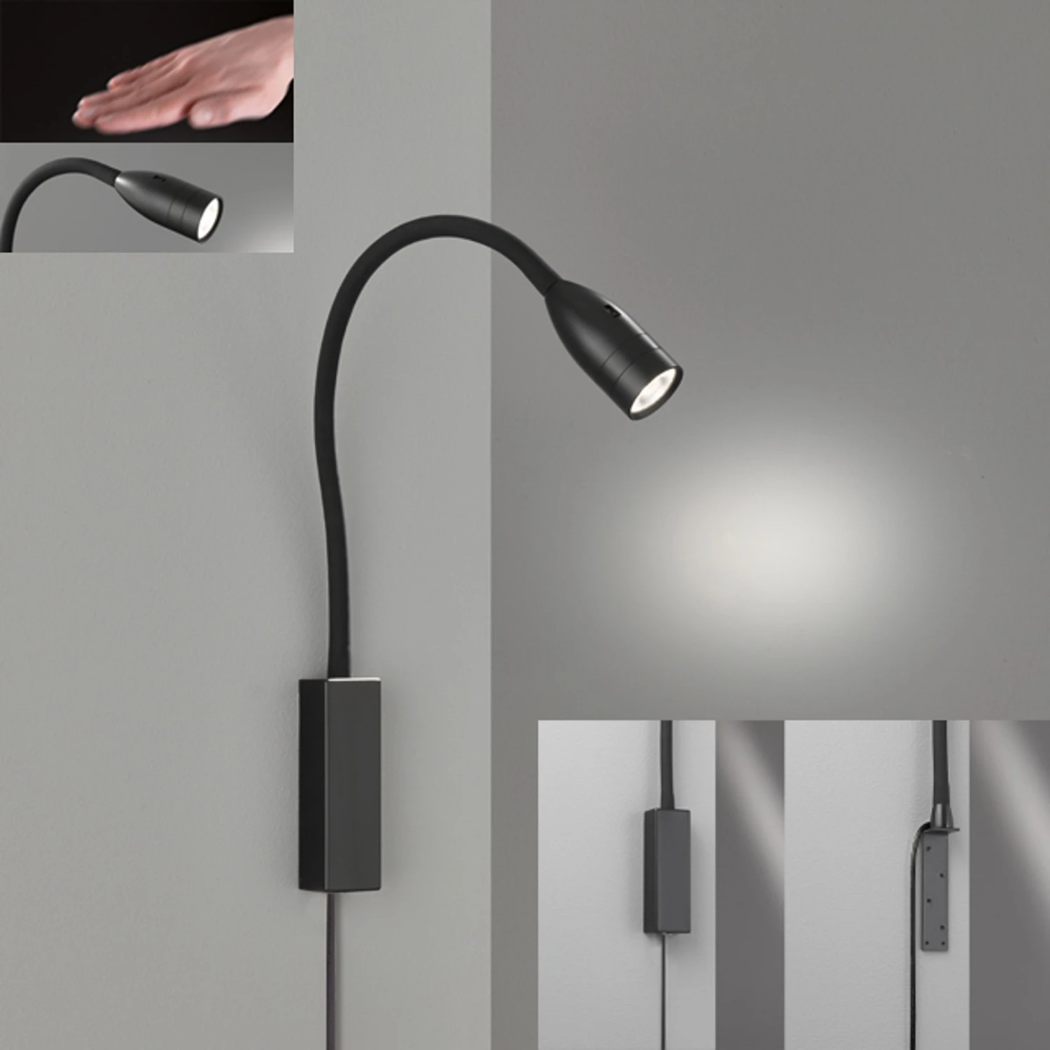 La lámpara en un diseño simple y negro impresiona con su tecnología incorporada. Se puede atenuar en pasos a través del control de gestos. Esto la convierte en la lámpara de cama perfecta, que se puede adaptar a cualquier situación. Un ambiente agradable en el dormitorio está garantizado con este aplique.