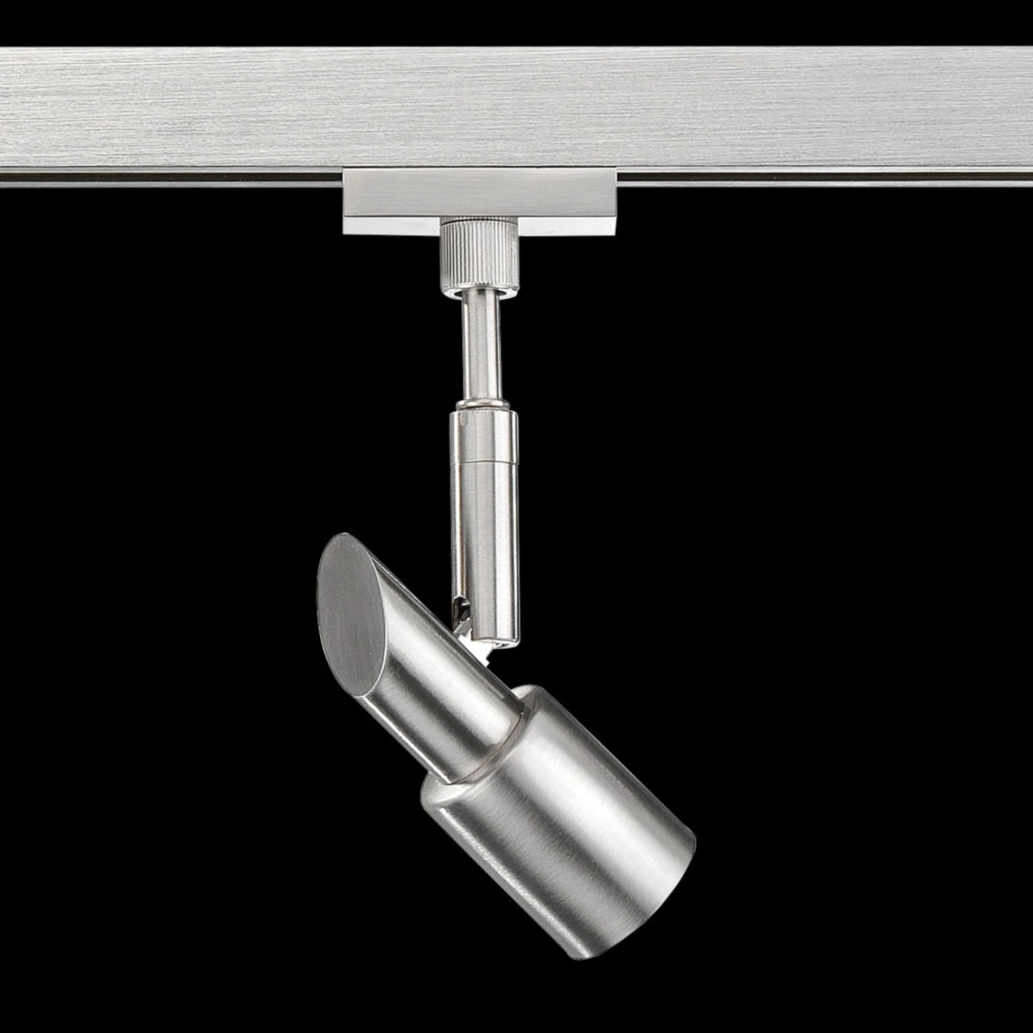Purista y contemporáneo, este pequeño foco de pista para uso en un sistema de pista HV Track 4 está hecho completamente de metal con una superficie de níquel mate. En el foco está integrado un soporte GZ10, que puede equiparse con todo tipo de lámparas GZ10 y GU10. Si se utiliza una lámpara regulable, el brillo de la luz también puede ser regulado a través de la instalación del edificio (regulador de voltaje de pared).