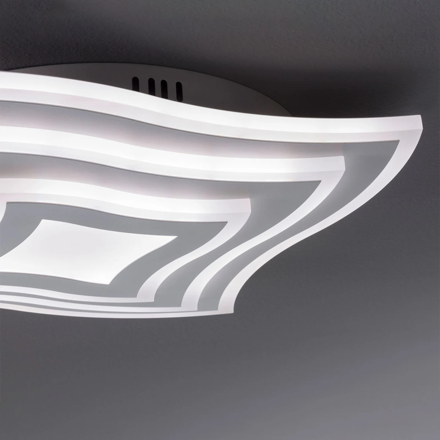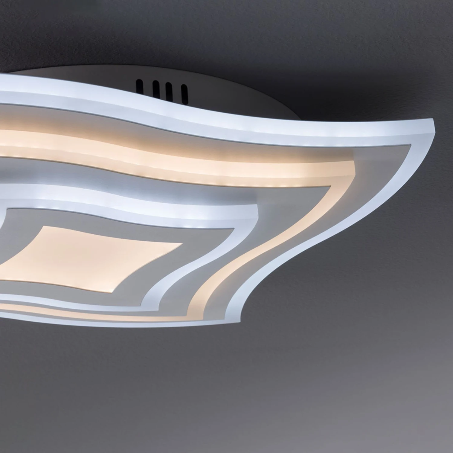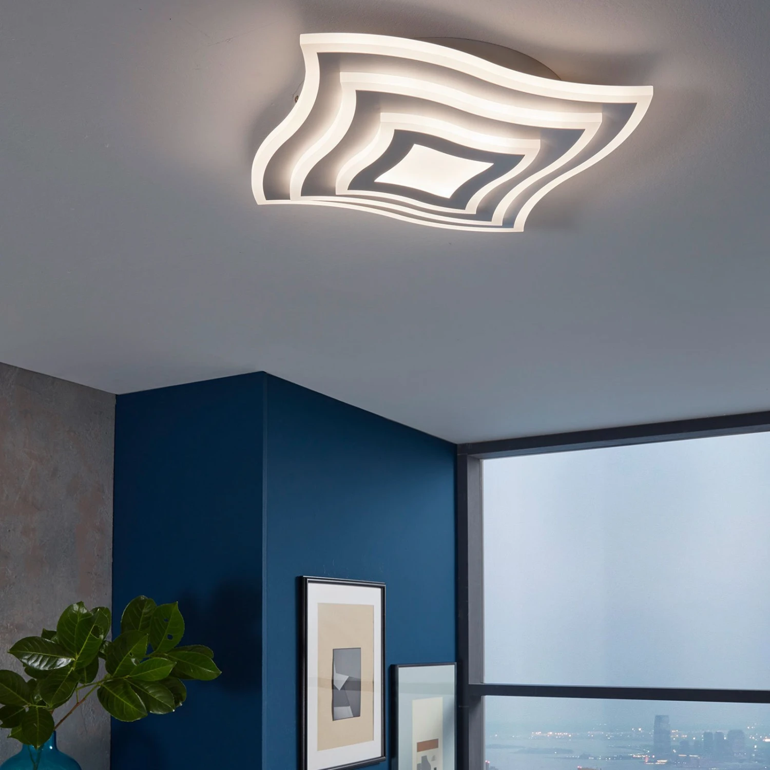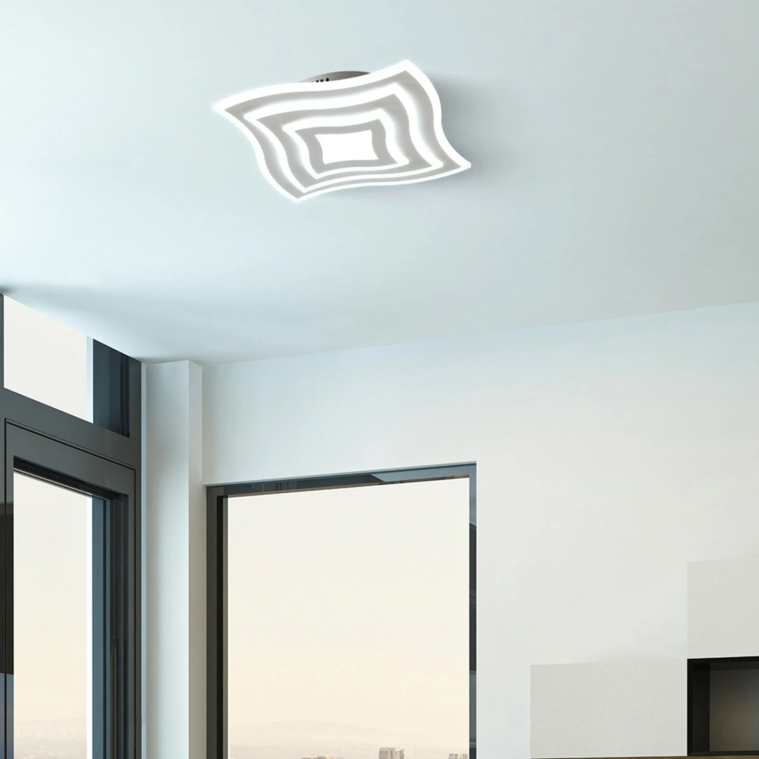 La lámpara de techo Gorden impresiona con su diseño estético y refinamiento sofisticado. Gracias a su funcionalidad intuitiva y simple, así como a su aspecto atemporal en blanco encantador, es una adición elegante a los conceptos de iluminación de varios diseños.