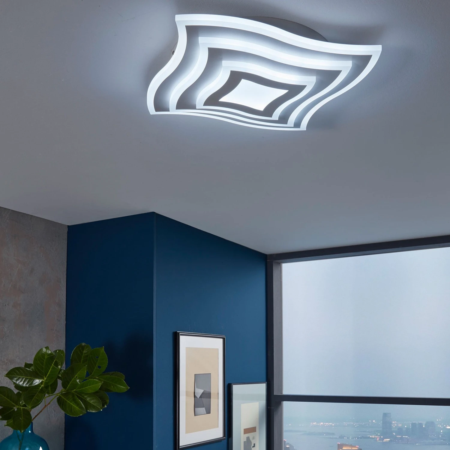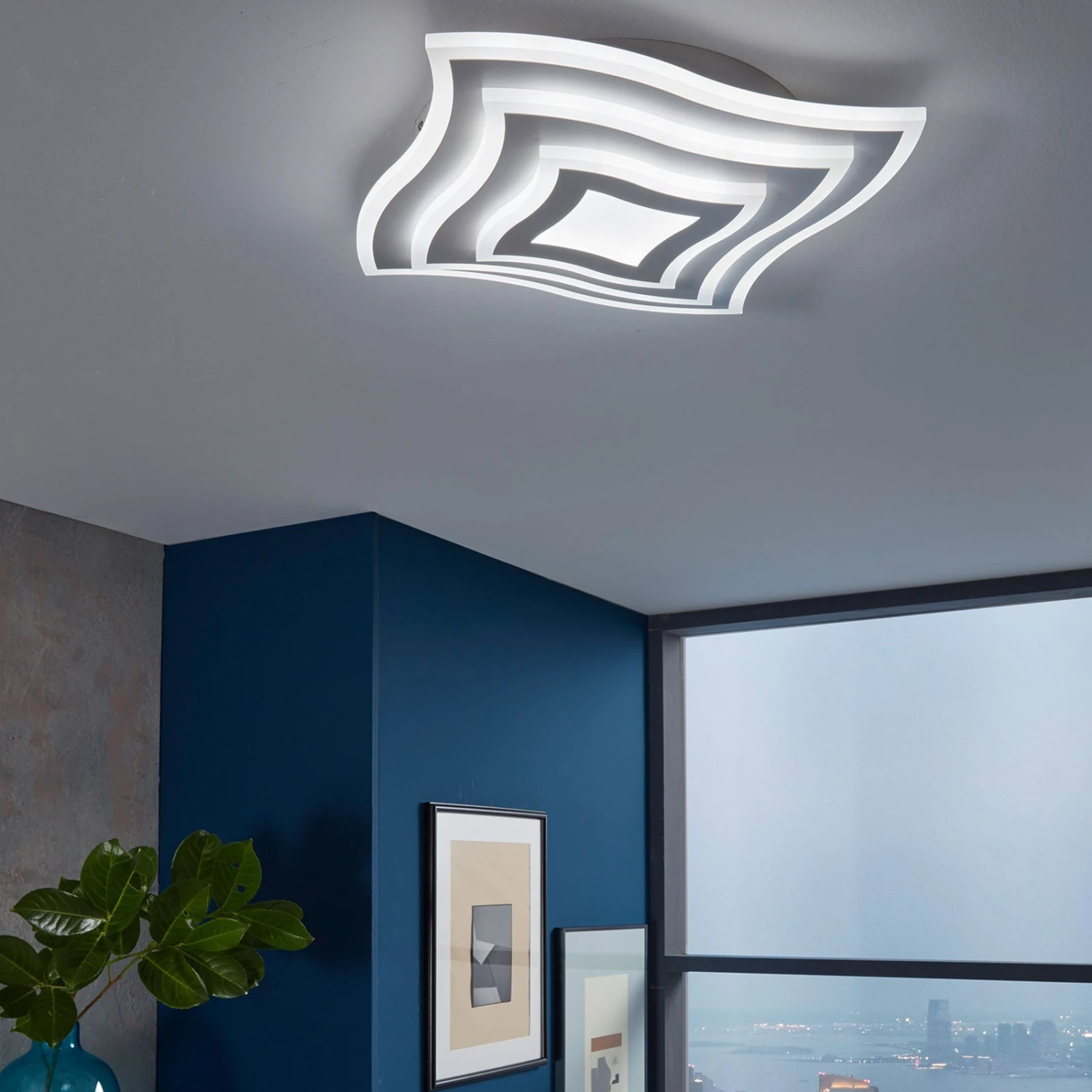 La luminaria ocupa poco espacio y puede usarse en muchos espacios de la vivienda y entornos de iluminación. La lámpara LED eficiente y económica en términos de energía se puede ajustar individualmente en intensidad luminosa y temperatura de la luz. También enriquece su entorno con su diseño en forma de diamante muy elegante y ligeramente juguetón en blanco.