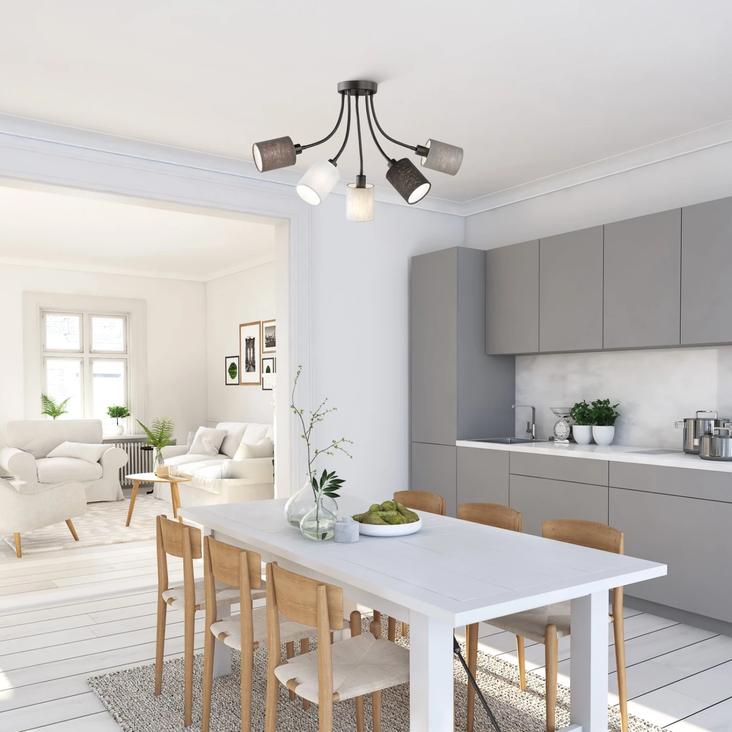 Plafón Koi Con Pantallas Textiles, 5 Luces