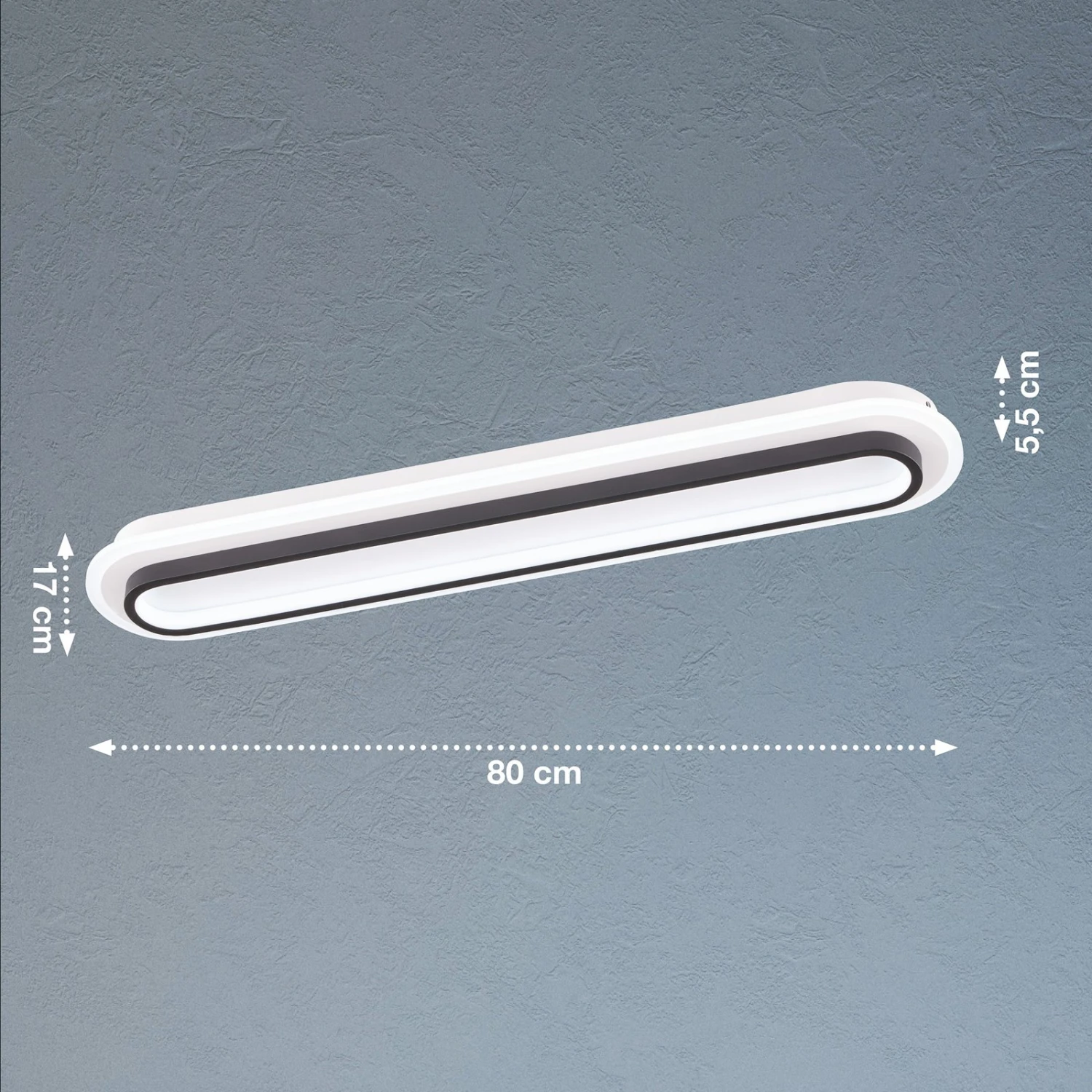 Plafón LED Blithe de forma alargada y estrecha, regulable a través del interruptor de paredUna característica especial del plafón LED Blithe de forma alargada y estrecha es su regulabilidad a través del interruptor de luz existente. Pulsando varias veces, la luminosidad de la luminaria puede conmutarse en tres niveles a través del interruptor de la luz sin esfuerzo adicional de instalación.